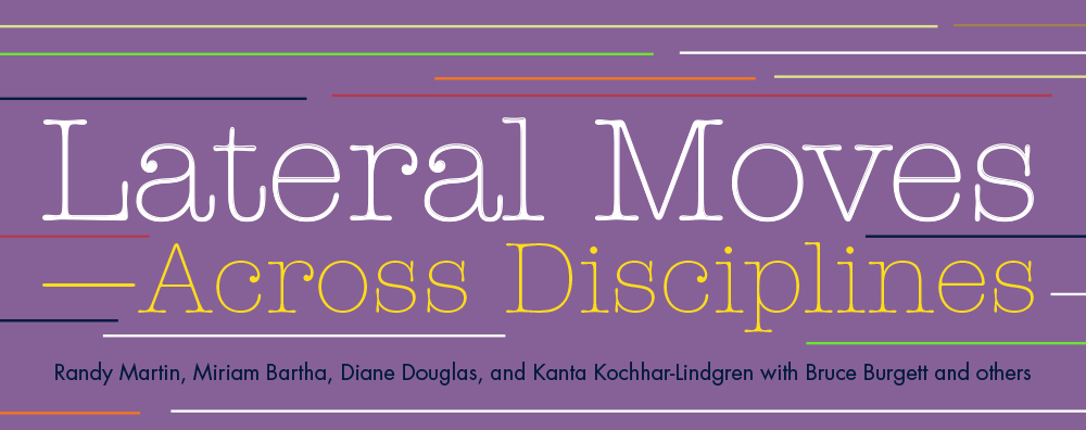 "Lateral Moves—Across Disciplines" is an edited conversation with Randy Martin and three members of the Cultural Studies Praxis Collective (CSPC): Miriam Bartha, Diane Douglas, and Kanta Kochhar-Lindgren. The original conversation took place at the University of Washington's Simpson Center for the Humanities in 2007. The transcript of the conversation was reworked and revised by the interlocutors and Bruce Burgett, the codirector (along with Kanta Kochhar-Lindgren) of the CSPC, then published in 2012 in Lateral: A Journal of the Cultural Studies Association as part of a "Universities in Question" research thread co-curated by Burgett and Martin.