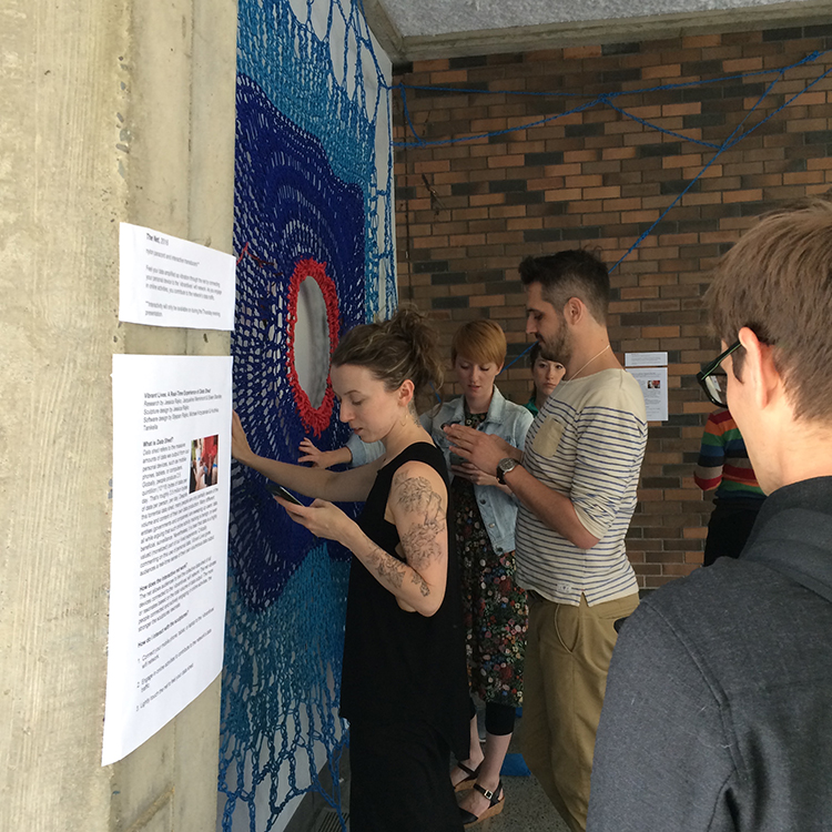 A first step in making visible the politics of activity tracking, health quantification, and mobile information harvesting is to make everyone more aware of the volume of data being gathered, how it changes with different activities on a phone or tablet device, and who is collecting and leveraging that information. Each of our installations thus far has asked people to feel and reflect on the collection of the data they shed all day long. In our most recent installations of the Living Net in both Victoria, BC, and Denver, CO, we’ve paired the collection and vibro-tactile representation of individual and group data shed with voluntary contributions of analog objects and metadata by our audiences. This new iteration on the original concept is designed to foreground the disparity between our largely invisible mobile data, which is highly monetized and actionable, and the tangible dust, refuse, and ephemera that we all trail behind us with little notice or care from ourselves or others. We want people to think about their own affective, epistemological, and political responses to the high value of the massive quantity of digital data and the relative lack of value attached to their analog information and objects.