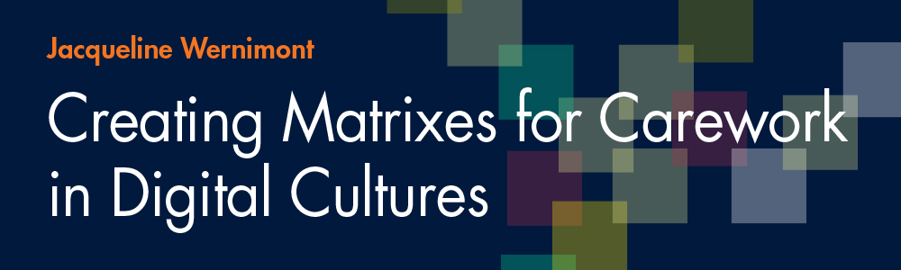 A matrix method then is a potent way of understanding and critiquing binary logics and simple, progressive narratives. Using the matrix as an organizing heuristic helps me to bring together what can seem to be disparate strands of my work, including a long-standing interest in historical relationships between number and word as commemorative and poetic technologies, work in digital archives and collections, and feminist approaches to science and technology. It is also a way to take a more pedagogical heuristic—MEALS, an acronym that Elizabeth Losh and I teach with in order to focus attention on the ways that technology is always material, embodied, affective, involves labor, and is situated—into domains where the languages of science and mathematics resonate strongly (Wernimont and Losh 2016, 35–47). Finally, the figure of the matrix offers representation of the notion of “carework” that is currently resonating with so many feminist digital scholars and artists today. As Lauren Klein noted in her “The Carework and Codework of the Digital Humanities,” carework is “the subset of feminized, reproductive labor, which is undertaken out of a sense of compassion with, or responsibility for others, rather than with a goal of monetary gain” (Klein 2017).