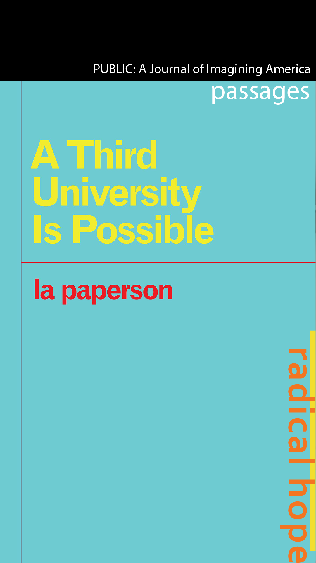 The following is excerpted from the chapter “A Third University Exists within the First” from la paperson’s A Third University Is Possible (2017. Minneapolis: University of Minnesota Press).